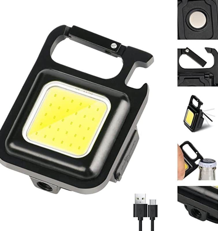 Amplia aplicación, mini linterna de bolsillo portátil con llavero, soporte plegable, abrebotellas y soporte magnético.